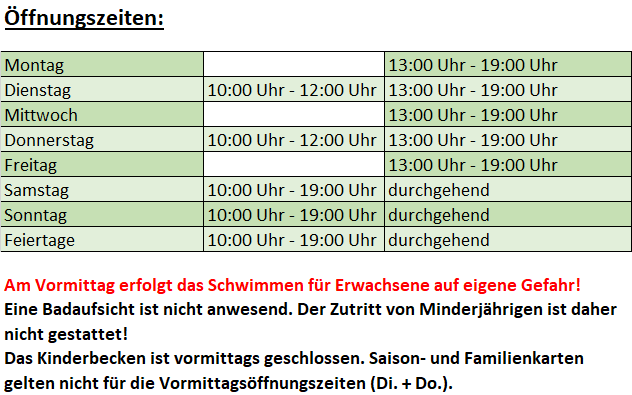 Voraussichtlich Mitte/Ende Mai, abhängig von der Witterung, werden wir die Tore für alle Badegäste wieder öffnen.