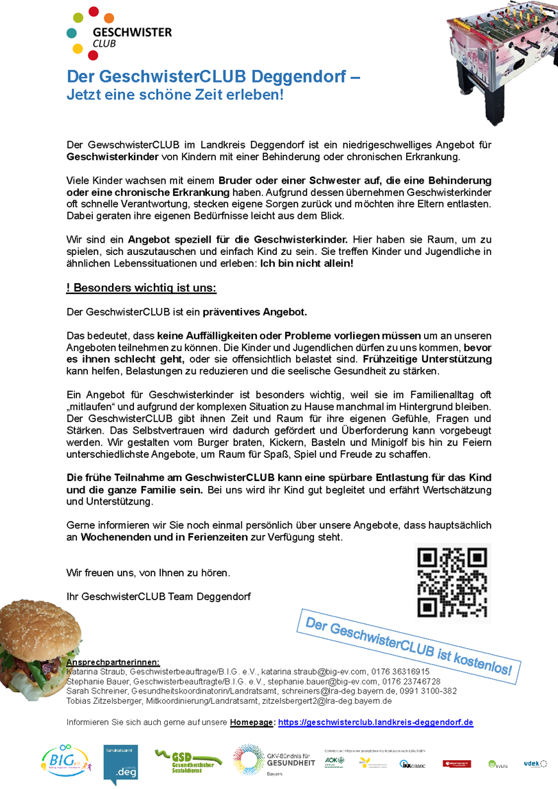 Meldung vom 22.01.2026 Der GeschwisterCLUB Deggendorf - Jetzt eine schöne Zeit erleben!