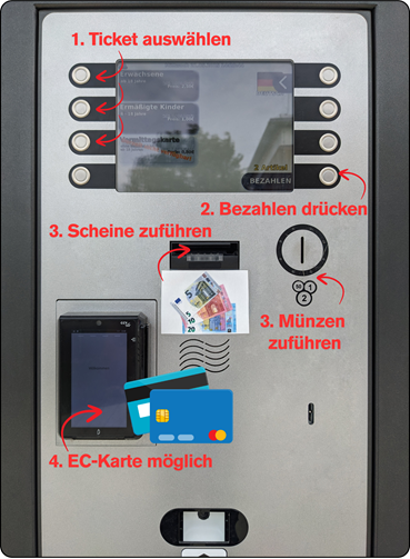 Bedienungsanleitung des Ticket-/Kassenautomaten im Naturbad Metten